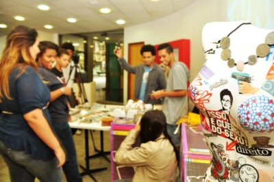 A oficina contou com um total de 10 jovens. Durante as atividades os jovens desenvolveram ideias de ocupação de espaços urbanos degradados através da arte e comunicação além de produzir uma obra com colagens em manequins que ganhou o nome de “Figura Articulada”.