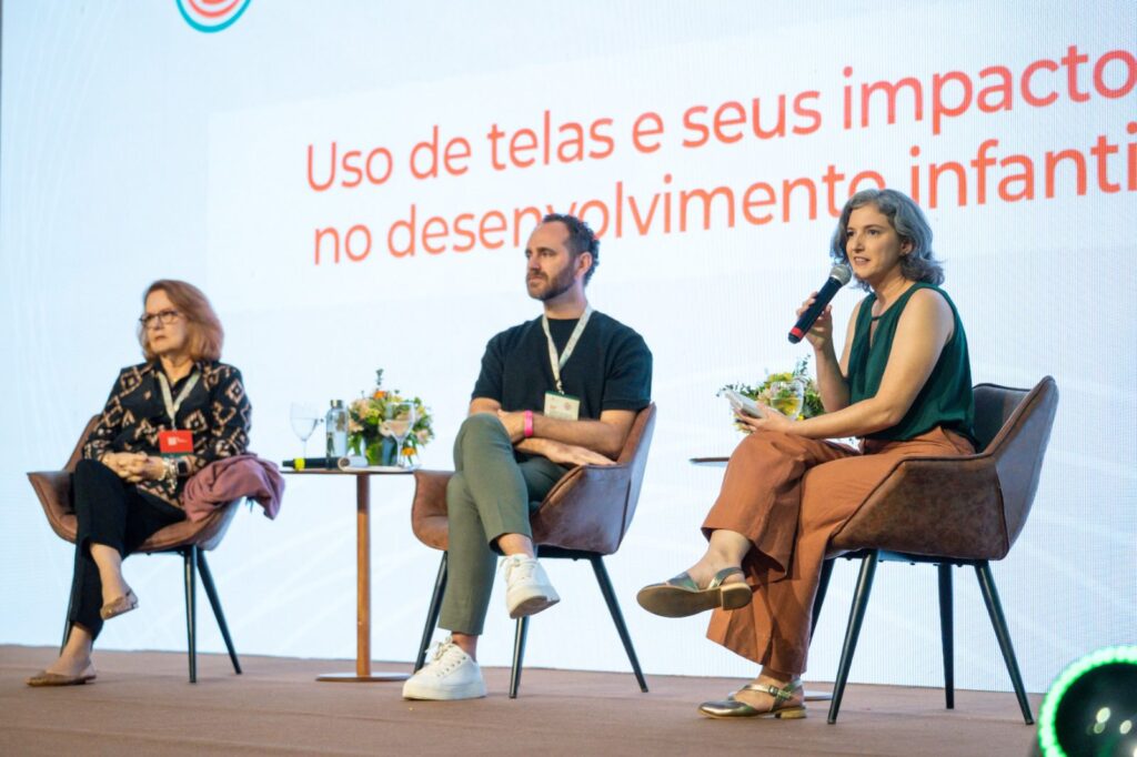 O painel de encerramento, com participação de Maria Beatriz Linhares (Faculdade de Medicina de Ribeirão Preto/ USP) e Paulo Fochi (Observatório da Cultura Infantil), abordou o uso excessivo de telas e seus impactos na saúde cerebral, cognitiva, linguística, emocional e social das crianças. Os especialistas enfatizaram que a interação real e a brincadeira são os melhores caminhos para tirar as crianças da internet e assegurar-lhes o direito a um desenvolvimento saudável e feliz.