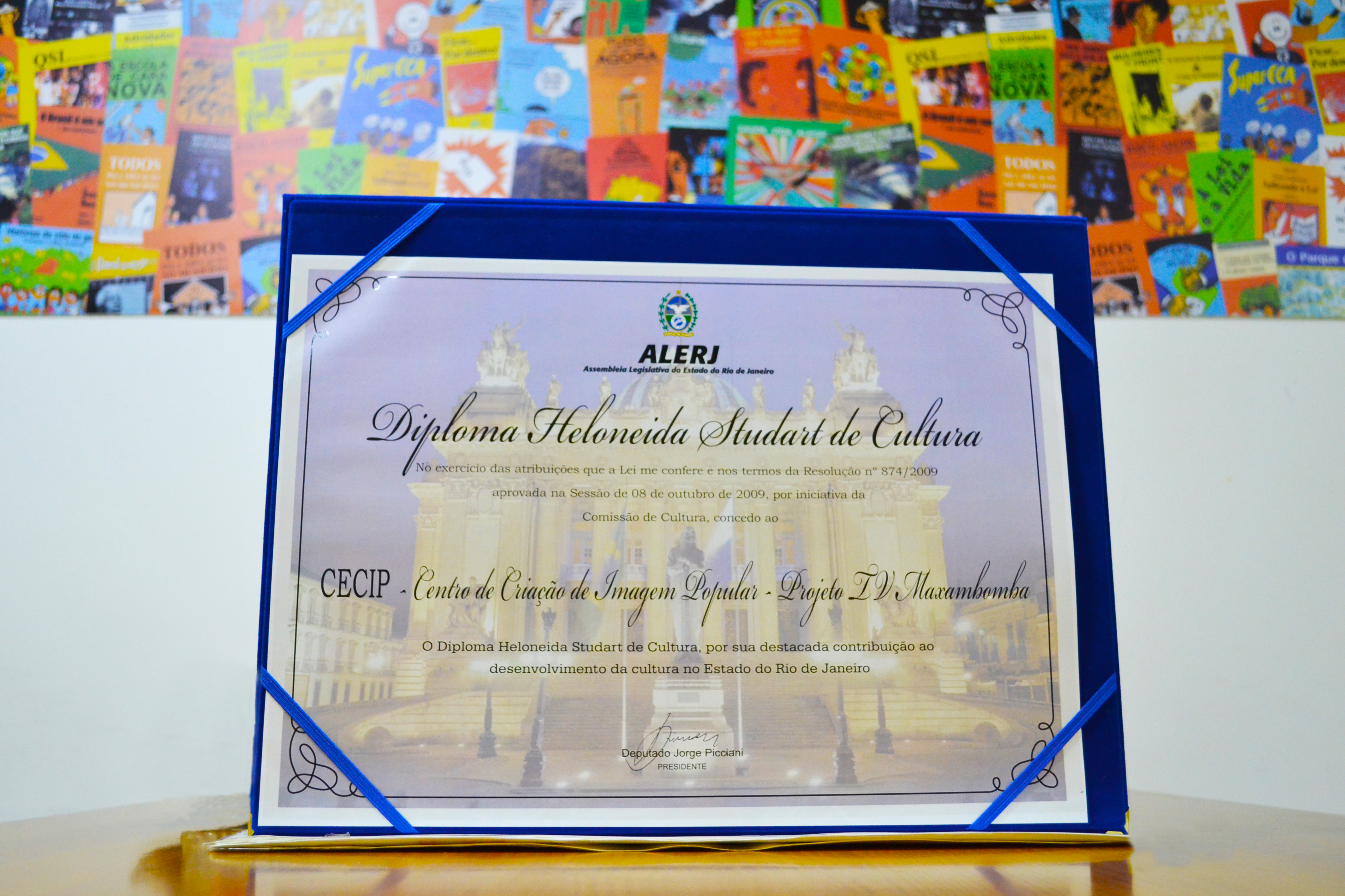 O Cecip Centro de Criação de Imagem Popular foi homenageado pela Assembleia Legislativa do Rio de Janeiro (ALERJ), com o Diploma Heloneida Studart de Cultura, por sua destacada contribuição ao desenvolvimento da cultura no estado com o Projeto TV Maxambomba. A cerimônia aconteceu ontem (13/06/2016) no Palácio Tiradentes e contou com a presença de autoridades e produtores culturais.