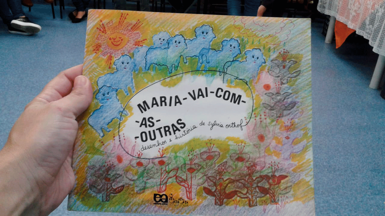 Após um gostoso café da manhã, nos deliciamos com a contação da história Maria vai com as outras, de Sylvia Orthof, dinamizada por Margareth da Silva, diretora do Grupo Comunitário Morro da Alegria.
